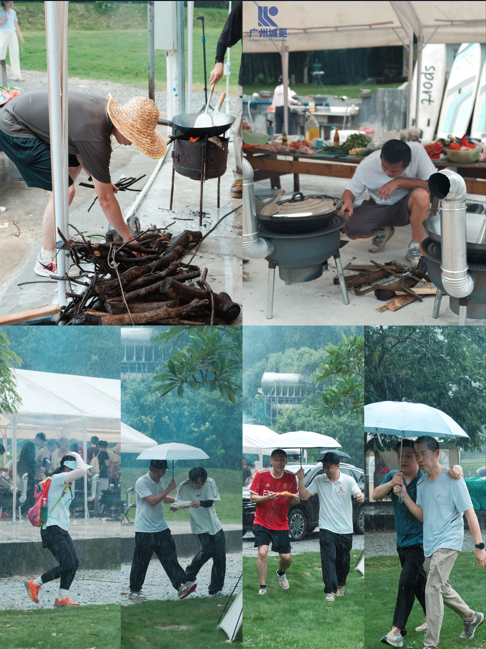 徒步以條件簡陋的野外營地為終點。面對原始爐灶與有限食材,各小組迅速響應(yīng)黨課要求,分工協(xié)作,劈柴生火,共烹“憶苦思甜飯”。裊裊炊煙中,團隊的應(yīng)變能力、協(xié)作精神和奉獻意識在資源受限的實踐中得到升華。飯后圍坐暢談,追憶艱苦歲月,攻堅克難的向心力與凝聚力在煙火氤氳中愈發(fā)堅實。